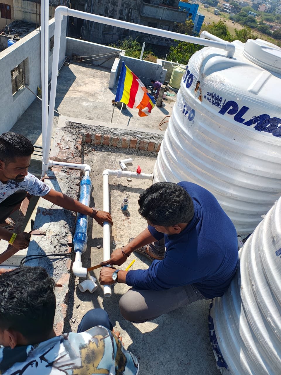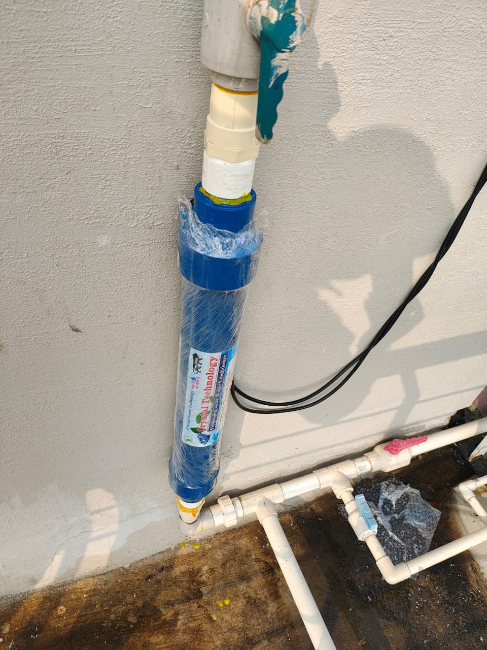 Best placed on the main water line—preferably right after the pump or before the overhead tank so that the entire system benefits.