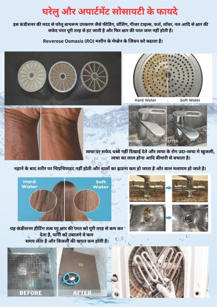 2) बर्तन, टाइल्स सफेद पड़ने से खराब नहीं होते।3) बालों में चिपचिपाहट महसूस नहीं होती और बालों का गिरना काफी हद तक रुक जाता है।